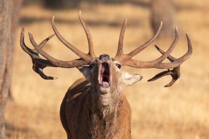Los ciervos, con su cornamenta renovada, se sitúan en los claros de vegetación para desde ahí lanzar sus bramidos, defendiendo el territorio de cara a otros machos, que acudirán para luchar por la zona y por las hembras que viven en ella. No sólo la voz, sino el sonido que producen los cuernos de los ciervos al chocar, impacta a todo aquel que decide pasar una noche en el bosque.