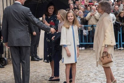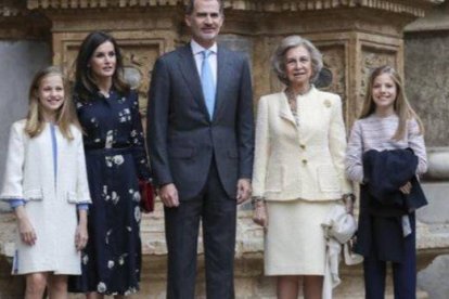 Los Reyes de España, Felipe VI y Letizia y sus hijas, la Princesa Leonor y la Infanta Sofía, asistieron este domingo como cada año, a la misa que se celebra en la catedral de Palma con motivo del Domingo de Resurrección.