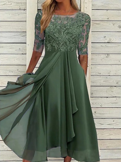 Si lo tuyo no son las lentejuelas, los bordados son una opción estupenda. Pensando en ti hemos elegido este vestido de largura midi con escote barco, cuerpo de encaje y falda capeada en gasa que vas a poder utilizar estas fiestas pero también como invitada de boda en cualquier época del año.