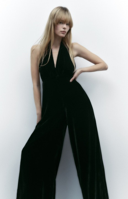 Sabemos que no es un vestido propiamente dicho, pero a vestido no le gana nadie. Si prefieres no enseñar piernas sin perder un ápice de glamour opta por un mono como este, elaborado en terciopelo con cuello halter y escote en pico. Cálzate unas botas de tacón altísimo, combínalo con pendientes grandes de brillo, un abrigo o una cazadora de cuero y bolso con cadena y estarás perfecta para ir a una cena de fin de año... o a donde tú quieras. Te costará 49,95 euros en Zara