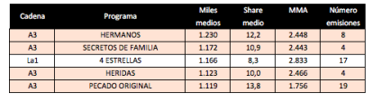 Y en series, como podemos ver en el cuadro superior, logra 4 de las 5 series más vistas de la televisión. Por su parte, La Sexta lleva 23 meses consecutivos imponiéndose a su rival directo, Cuatro.