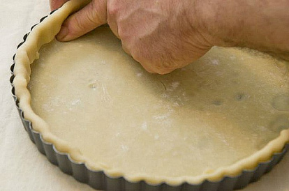 - Con cuidado, saque el molde con la lámina de hojaldre del horno. Mantener la temperatura a 180º.