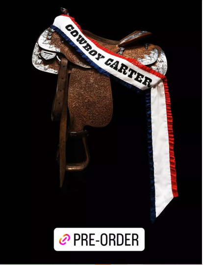 El sitio web de Beyoncé se ha metamorfoseado para reflejar la estética única de "Cowboy Carter". En la página principal, una imagen intrigante de una silla de montar con una faja roja, blanca y azul, con la inscripción "Country Carter", sirve como telón de fondo.
