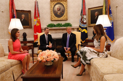 Los Reyes con el matrimonio Trump, esta madrugada en la Casa Blanca.