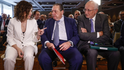 Ayuso en un acto con empresarios, junto a los valencianos Vicente Boluda y Juan Roig.