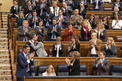 La bancada del PSOE aplaude en pide a Sánchez en el Congreso este miércoles... con Yolanda Díaz