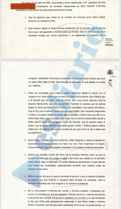 ESdiario publica el informe de la Guardia Civil con las declaraciones de la primera cuidadora y su jefa que denuncian el infierno al que fue sometido la tía María Isabel.