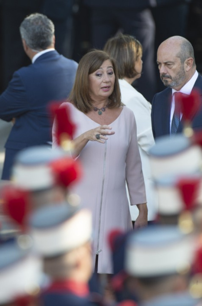 La presidenta del Congreso, Francine Armengol, delante de su homólogo en la Cámara alta, Pedro Rollán