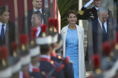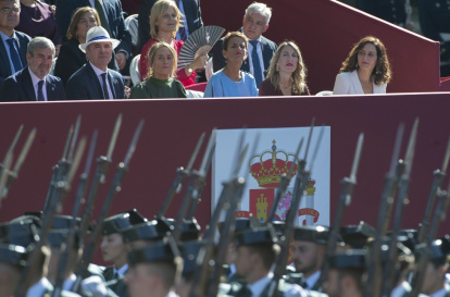 Chivite, Guardiola y Ayuso, aplauden al paso de los militares en una jornada marcada por el buen tiempo