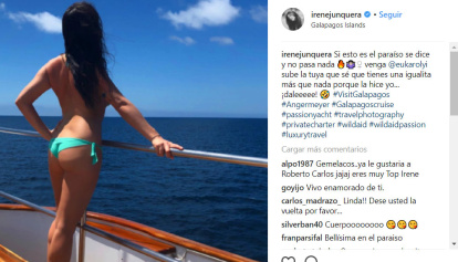 Así se desprende del festival de fotos de sus pedazo de megavacaciones que está compartiendo por Instagram desde el 22 de enero por Ecuador: Quito, Otavalo, Islas Galápago... Las imágenes son espectaculares y, amén de una buceando con un escueto bañador, Irene ha publicado un topless de espaldas a bordo de un barco que ha puesto las redes del revés.